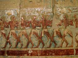 照らし出された壁画を前に、最初のバクシーシおやじは「えー、これは牛ですね、で、これが女性と子供。麦を収穫して運んでいる図ですね」とか説明しちゃっているけど、誰が見てもそんなことはわかるっつーの。1つだけ解説で面白かったのは、女性が頭の上に何かを乗せている図の前に来た時だった。古代エジプトでは女性は香料の塊を頭の上に乗せていて、太陽の熱で溶けることでいい香りを発していたとバクシーシおやじは言うのだった。それは新しい。この説明にはお金を払う価値があると思った。