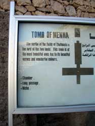 メインロードから見て、駐車場の右手に村に向かう上り坂があるので、その坂を上っていく。するとバクシーシとは関係のない、清いエジプト人村人がいるので、こっそりと「ミンナの墓はどこですか?」と聞くと、指差して教えてくれる。