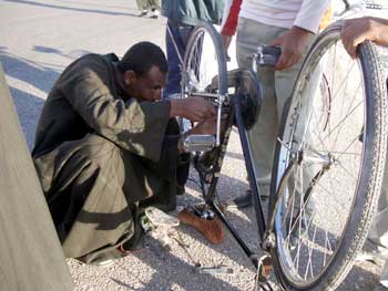「冗談でしょう」と彼はあっはっはと笑って手を横に振り、それならEGP15でどうかと言ってきた。いやいや、EGP3はくずせないね。というと、君らは自転車を中国にでも持って帰って売るつもりかと言う。それならEGP12でどうだと、もう少し下がってきた。
